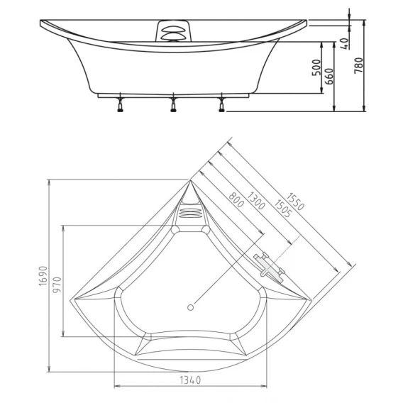 Акриловая ванна 155x155 см Alpen Bermuda 33219