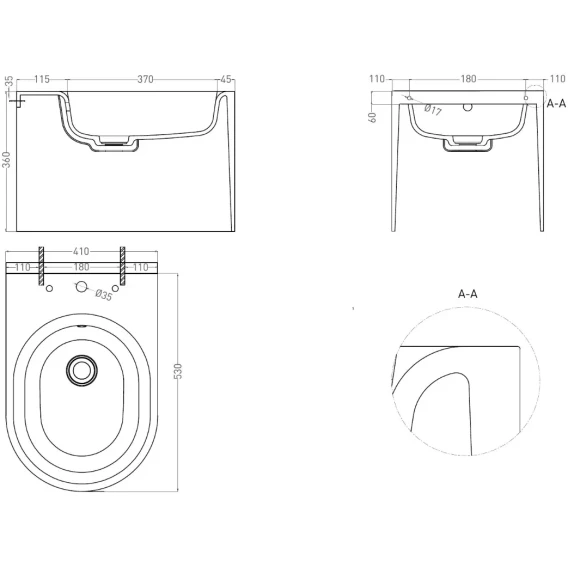 Глубина 53 см