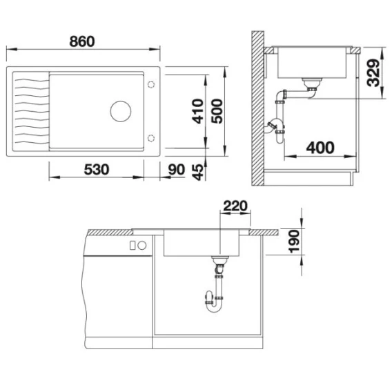 • Мойка оборачиваемая, возможна установка под столешницу