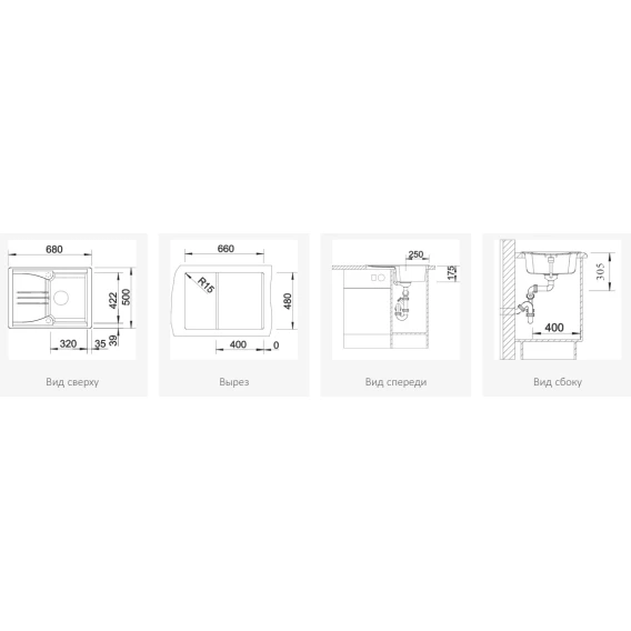 • Оборачиваемая мойка для установки в шкаф шириной от 40 см