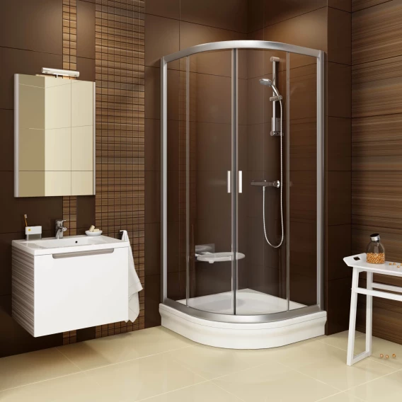 Изделие состоит из двух ровных неподвижных частей и двух изогнутых частей, образующих раздвижные двери. Устанавливается в облицованный кафелем угол ванной комнаты на поддоны RAVAK RONDA, ELIPSO, ELIPSO PRO, ELIPSO PRO FLAT, ELIPSO PRO CHROME или непосредственно на пол со встроенным душевым каналом или трапом.