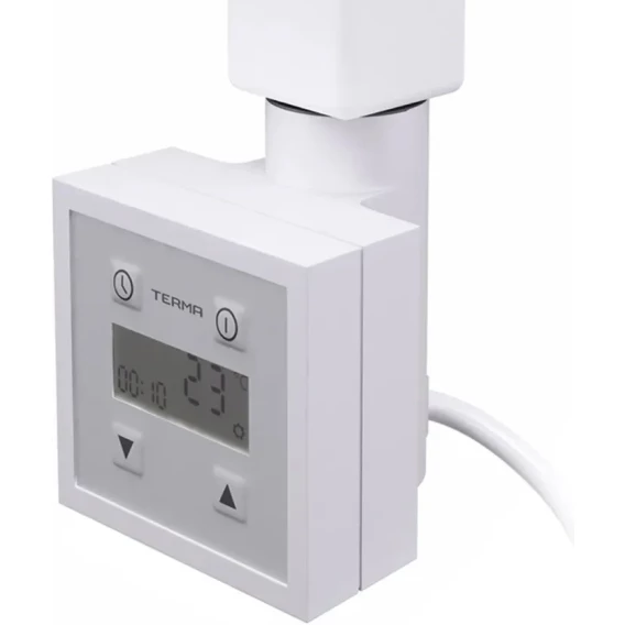 Электронагреватель позволяет регулировать температуру полотенцесушителя в диапазоне от 30° С до 60° C, с точностью до 1°C. Устройство демонстрирует установленную температуру, режим нагрева и ожидания.
