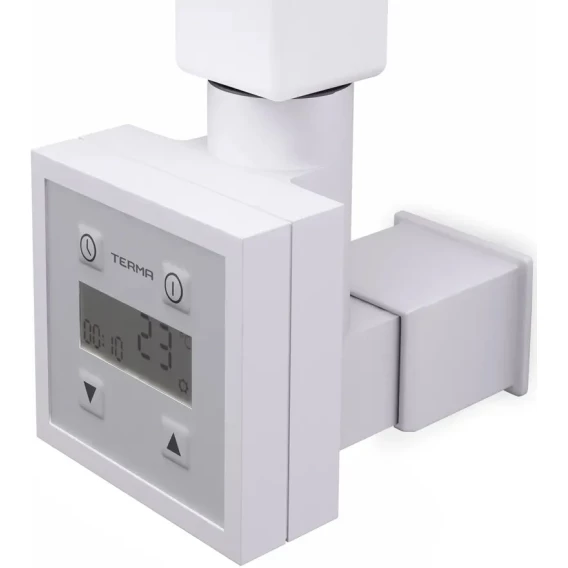 Электронагреватель позволяет регулировать температуру полотенцесушителя в диапазоне от 30° С до 60° C, с точностью до 1°C. Устройство демонстрирует установленную температуру, режим нагрева и ожидания.