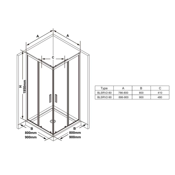 Душевой уголок 80x80 см Ravak Blix Slim BLSRV2 X1LM40C00Z1 прозрачное