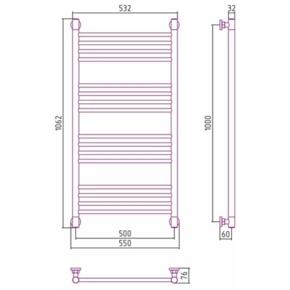Полотенцесушитель водяной 1000x500 Сунержа Богема+ 00-0220-1050