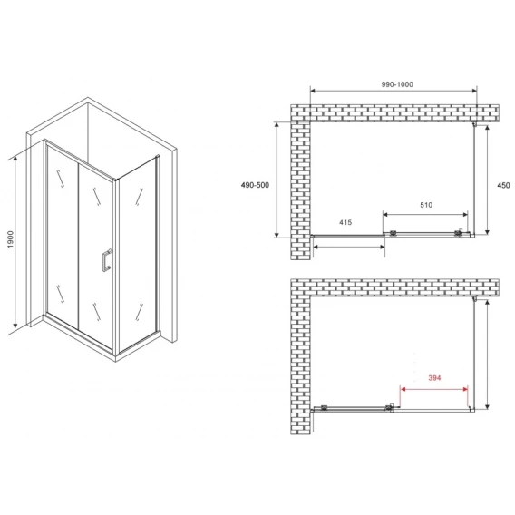 Душевая дверь 160-180 см Deto FC160 прозрачное