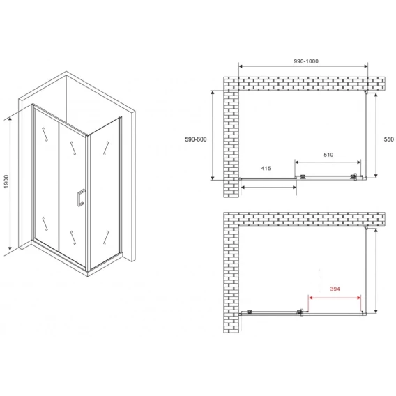 Боковая стенка 60 см Abber Schwarzer Diamant S60B5 прозрачное
