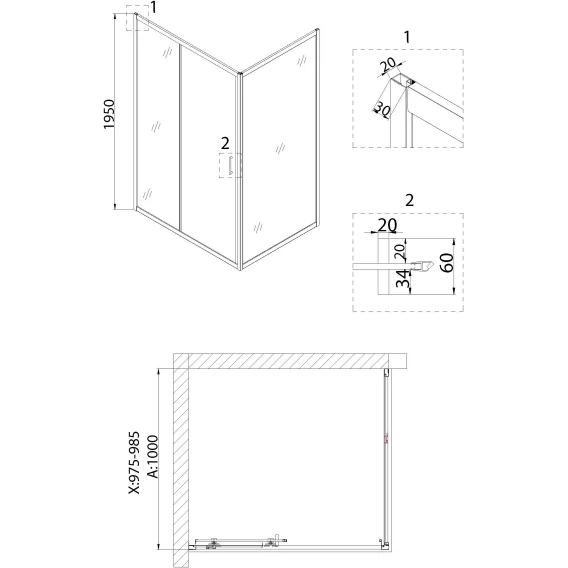 Душевая дверь 98,5 см Niagara NG-82-10AB прозрачное