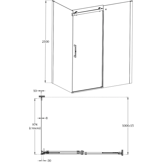 Душевой уголок Vegas Glass EP-Fis LUX 80 05 10 R 80x80 см R, профиль бронза, стекло сатин