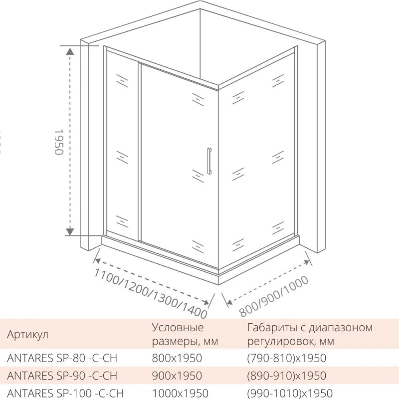 Душевая дверь 100 см Good Door Antares WTW-100-C-CH прозрачное
