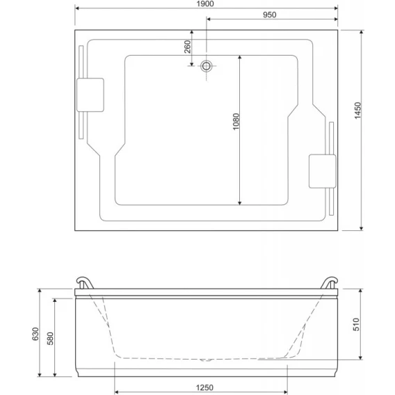 Акриловая ванна 190x145 см Cezares Plane Duo PLANE_DUO-190-145-51-W37