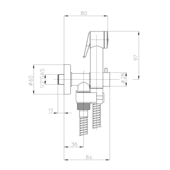 Душевой шланг, Душевая лейка, Подключение для душевого шланга с держателем, Угловой вентиль