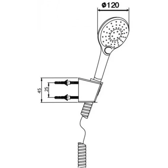 Крепление, Душевой шланг, Душевая лейка, Держатель для душевой лейки