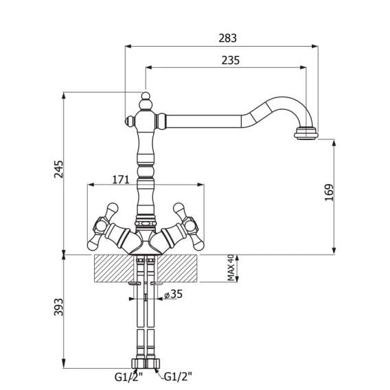 Высота излива 16.9 см