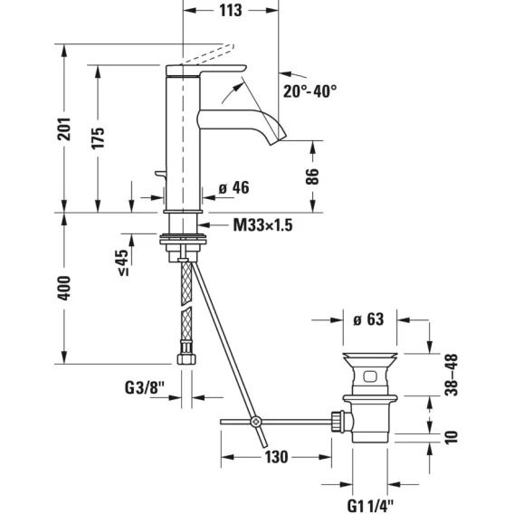 Смеситель для раковины без донного клапана Duravit C.1 C11020002010