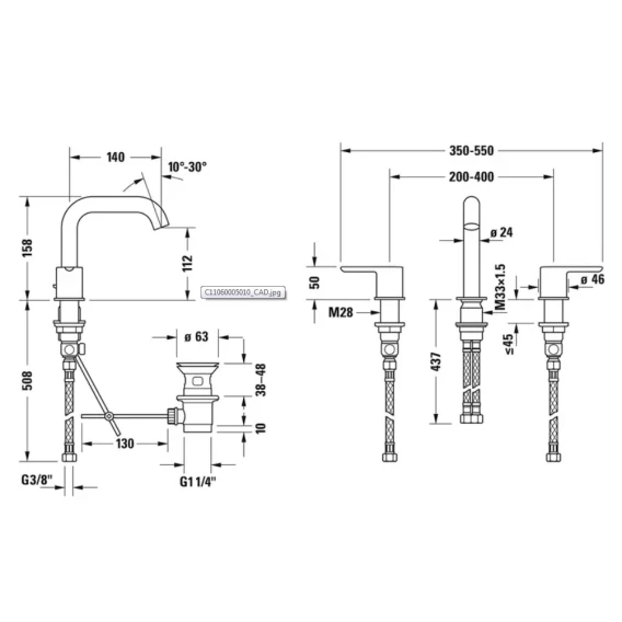 Крепление, Аэратор, Гибкая подводка, Донный клапан