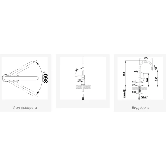 • Высокий изогнутый излив облегчает наполнение высоких кастрюль и ваз