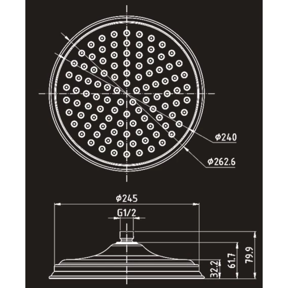 Диаметр верхнего душа 26.26 см