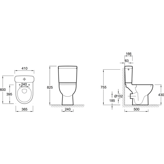 Ширина:365 Высота:430 Глубина:600 Материал корпуса: фарфор Цвет: белый Тип установки: напольный Угловая конструкция: нет Выпуск воды: горизонтальный
