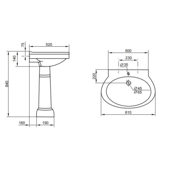 Глубина 52 см