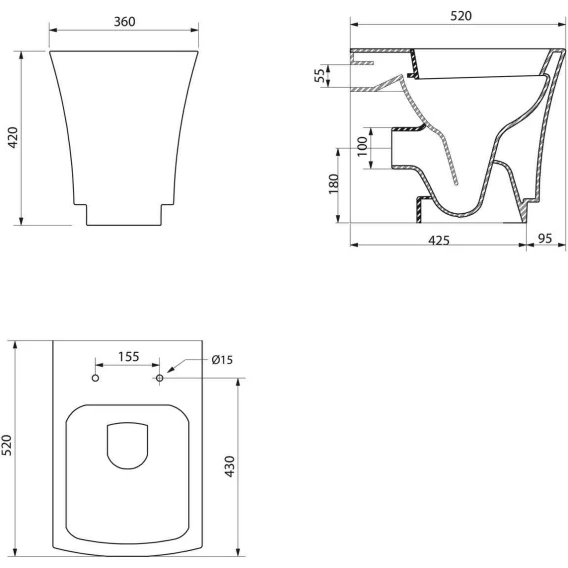Приставной безободковый унитаз BelBagno Regina BB104CB