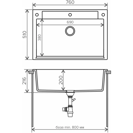 Кухонная мойка Polygran Argo-760 черный 575882