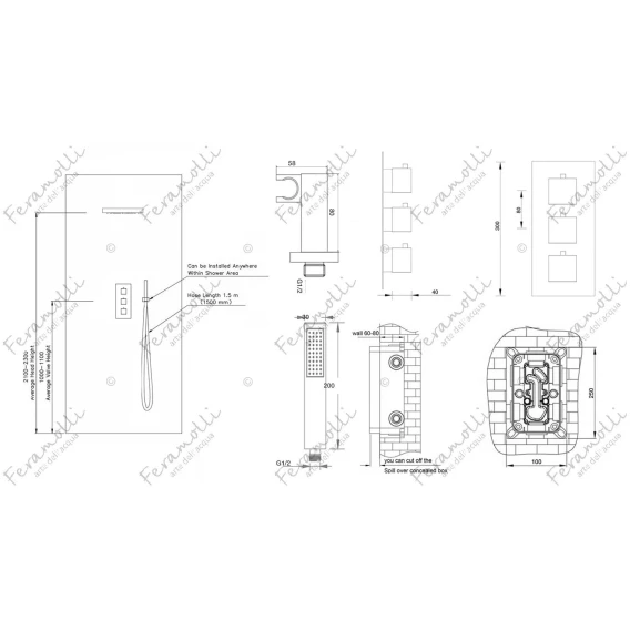 Душевой комплект 550x230 мм Feramolli Termostato BL7069