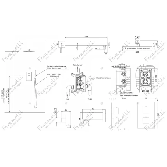 Душевой комплект 300 мм Feramolli Termostato BL715-12