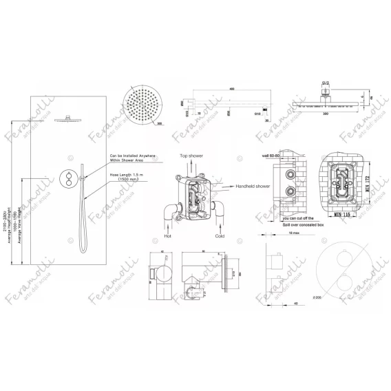 Душевой комплект 300 мм Feramolli Termostato BL706-12