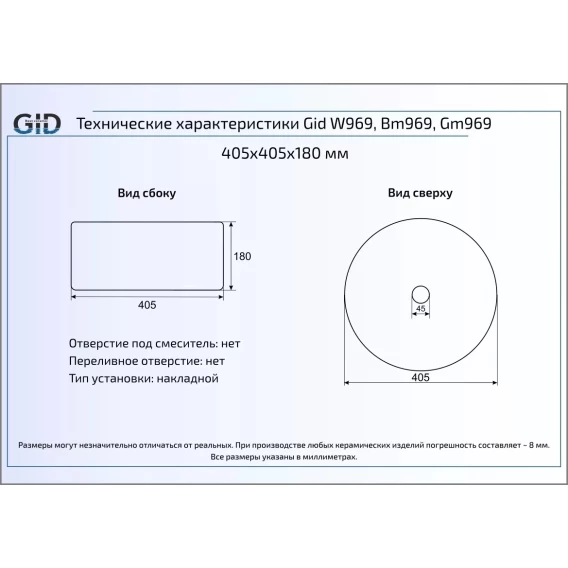 Раковина 40,5x40,5 см GID LuxeLine Bm969