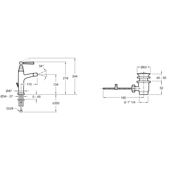 Смеситель для биде с донным клапаном Jacob Delafon Cleo 1889 E24310-CP