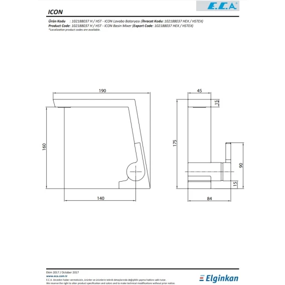 Смеситель для раковины E.C.A Icon 102188037HEX