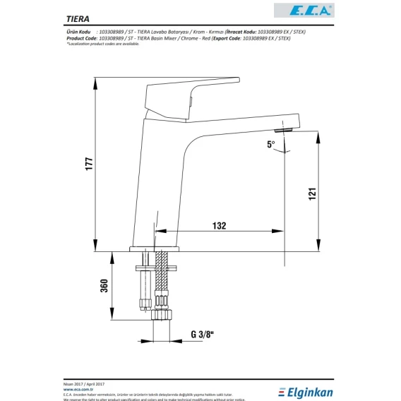 Смеситель для раковины E.C.A Tiera 103308989EX
