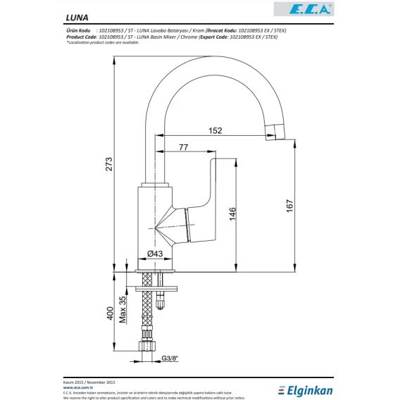 Смеситель для раковины E.C.A Luna 102108953EX