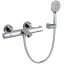 Ограничитель температуры воды на 38°C на рукоятке. Рукоятка регулировки расхода с ограничителем EcoFlow и дивертером. В комплект входят обратные клапаны, грязевые фильтры и затворы