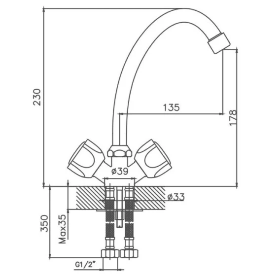 Смеситель на борт ванны ванны E.C.A Lotus 102153002EX