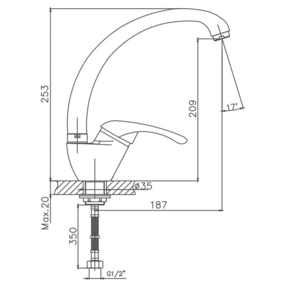 Длина излива 18.7 см