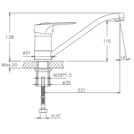 Смеситель для кухни Milardo Meal M02BNR0M05