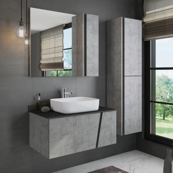 Зеркало 88x80 см бетон светлый/черный Comforty Эдинбург 00004147981