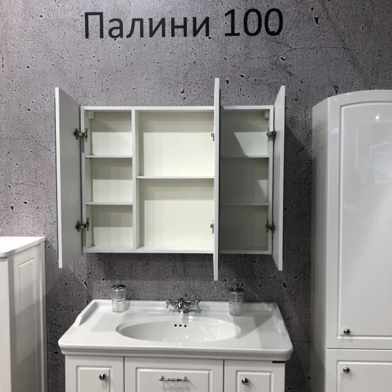 Зеркальный шкаф 98x80 см белый глянец Comforty Палини 00004147994