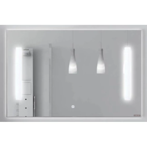 Зеркало оснащено светодиодной подсветкой в виде двух вертикальных полос по краям полотна, и сенсорным выключателем