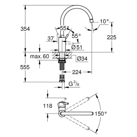 • GROHE Zero Раздельные пути подачи воды - не содержит никеля и свинца