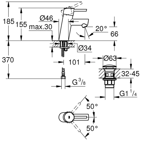 Смеситель для раковины с донным клапаном Grohe Concetto New 23931001