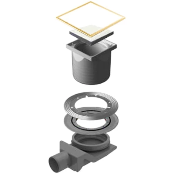 Душевой трап 144x144/50 мм белый глянец/золотой Pestan Confluo Standard White Glass Gold 4 13000159