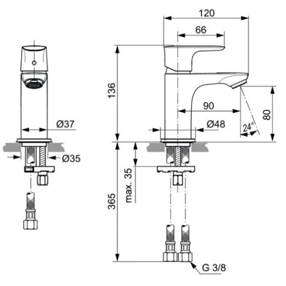 Смеситель для раковины без донного клапана Ideal Standard Connect Air Piccolo A7018AA
