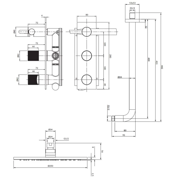 Душевой комплект 250мм Omnires Contour SYSCT10AT