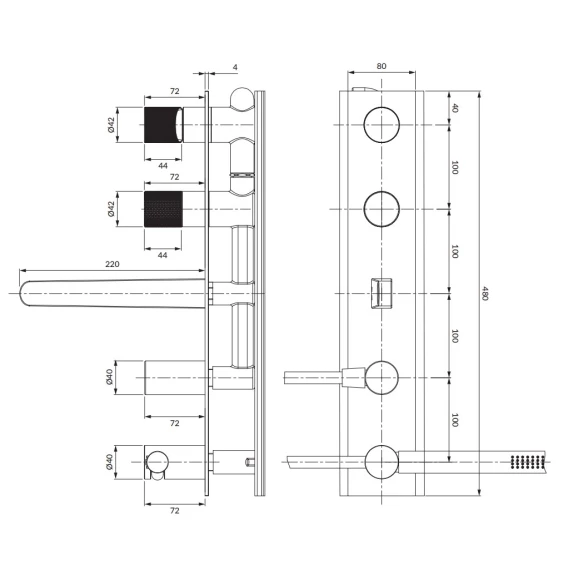 • размеры розетки: 48x8 см, длина излива: 20,7 см