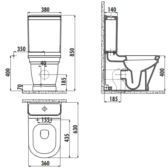 Снизу бачка