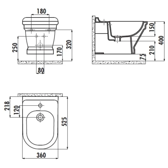 Подвесное биде Creavit Antik AN510-00CB00E-0000