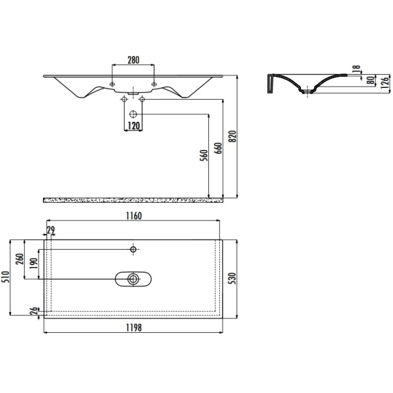 Раковина 119,8x53 см Creavit Drop DP120-00CB00E-0000